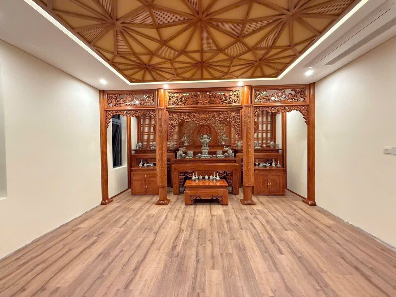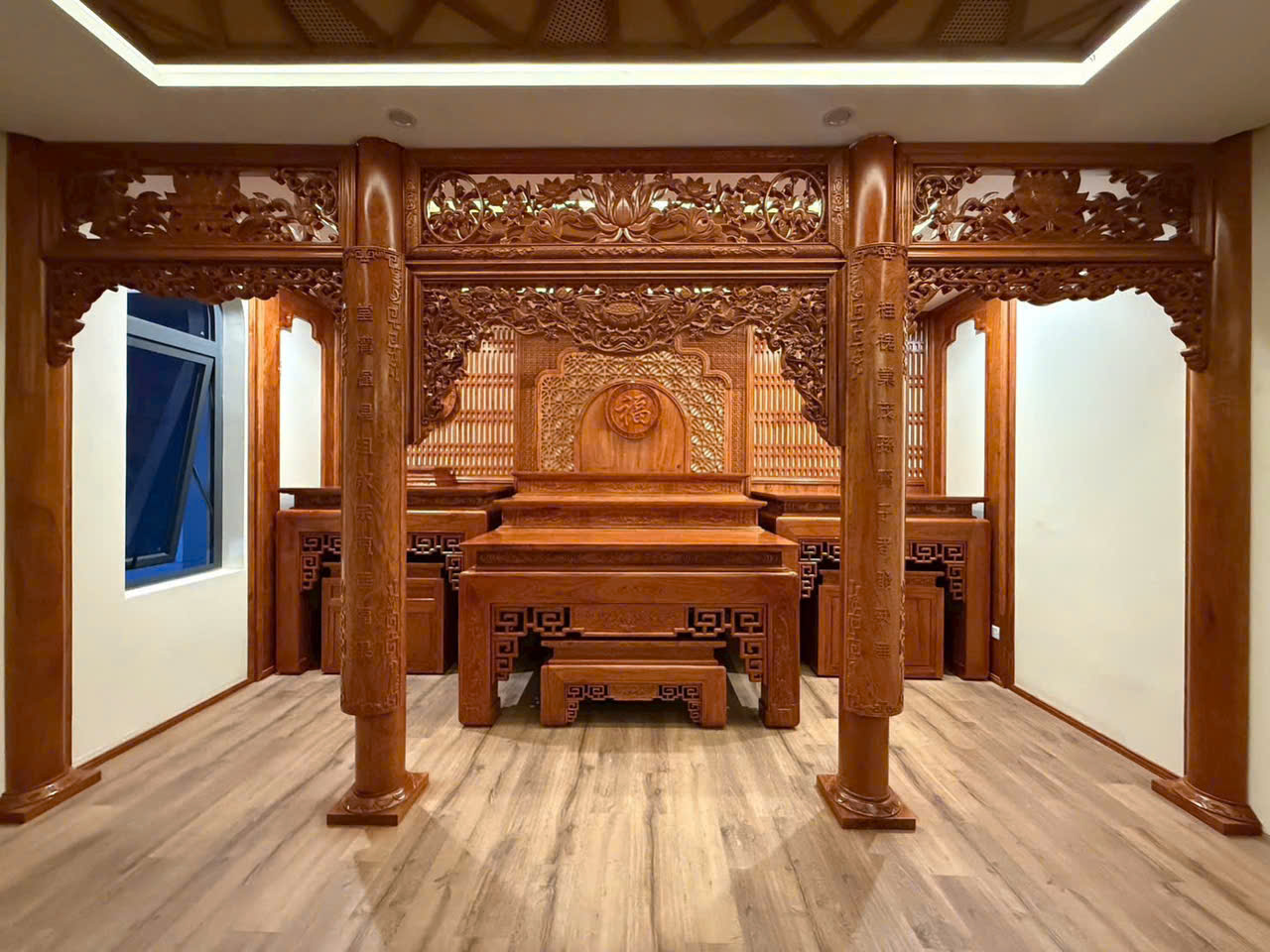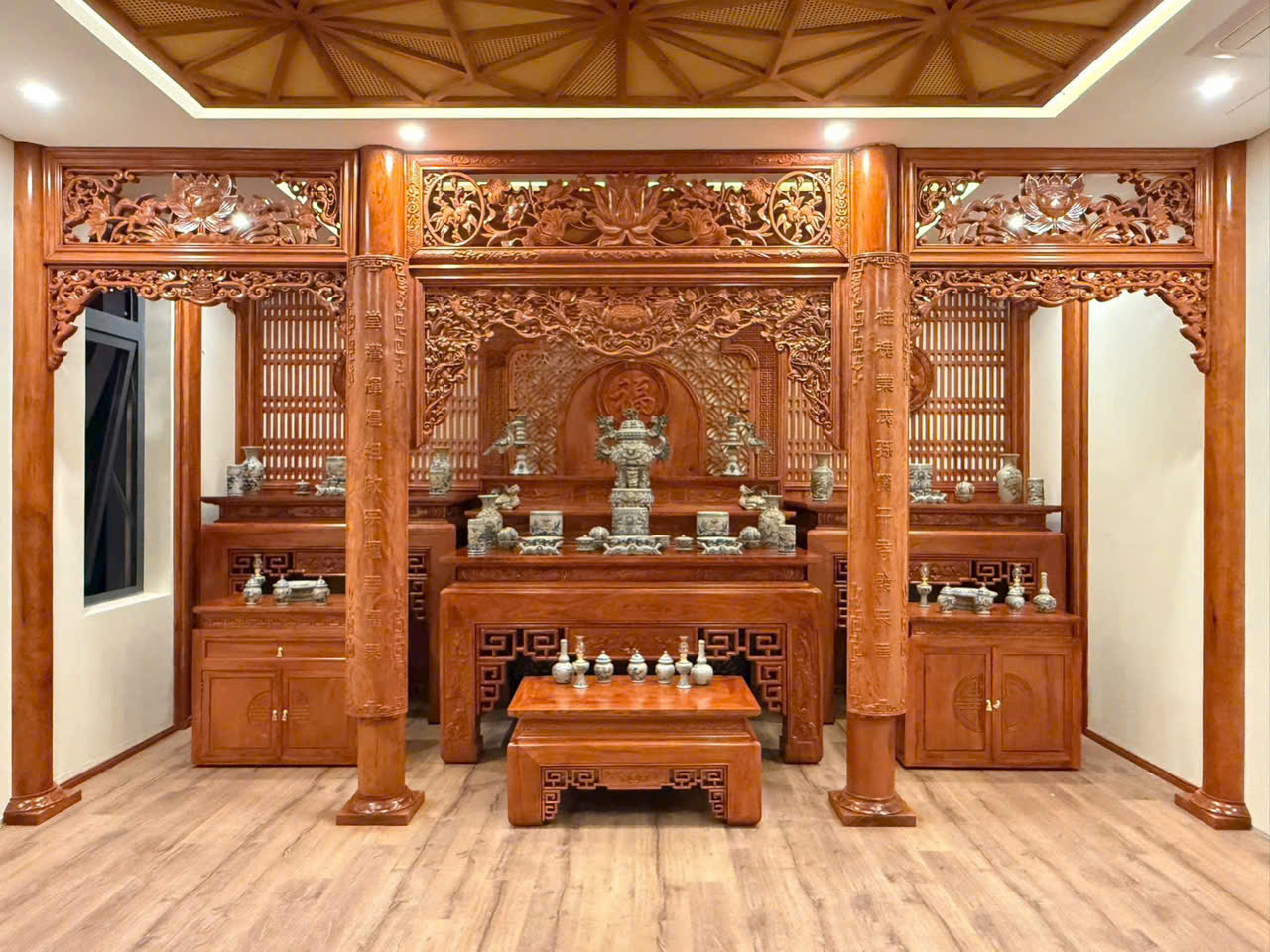 Bàn thờ truyền thống: Chạm khắc hoa văn cổ, mang đậm bản sắc văn hóa