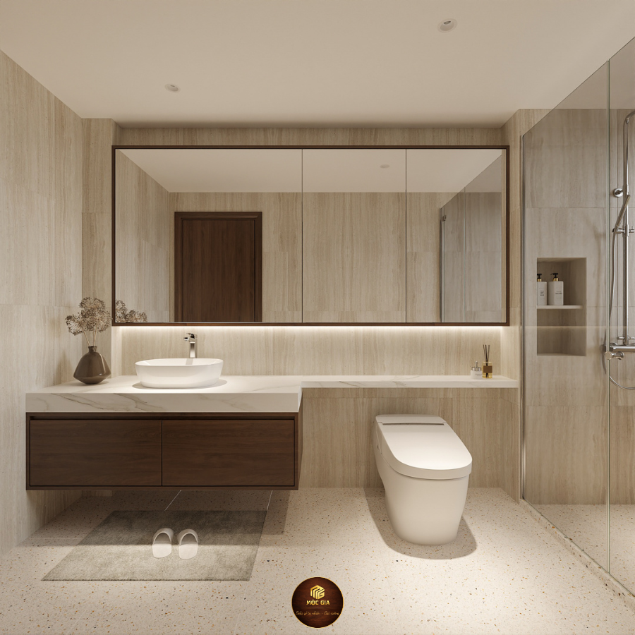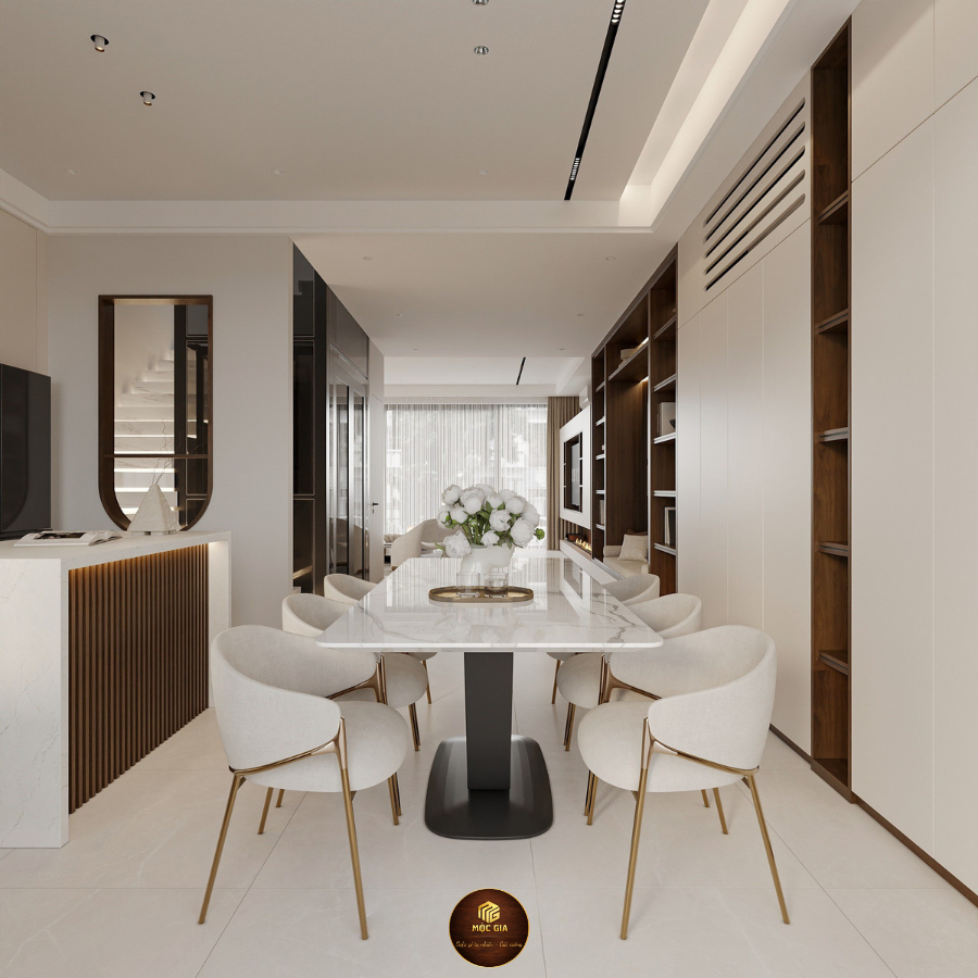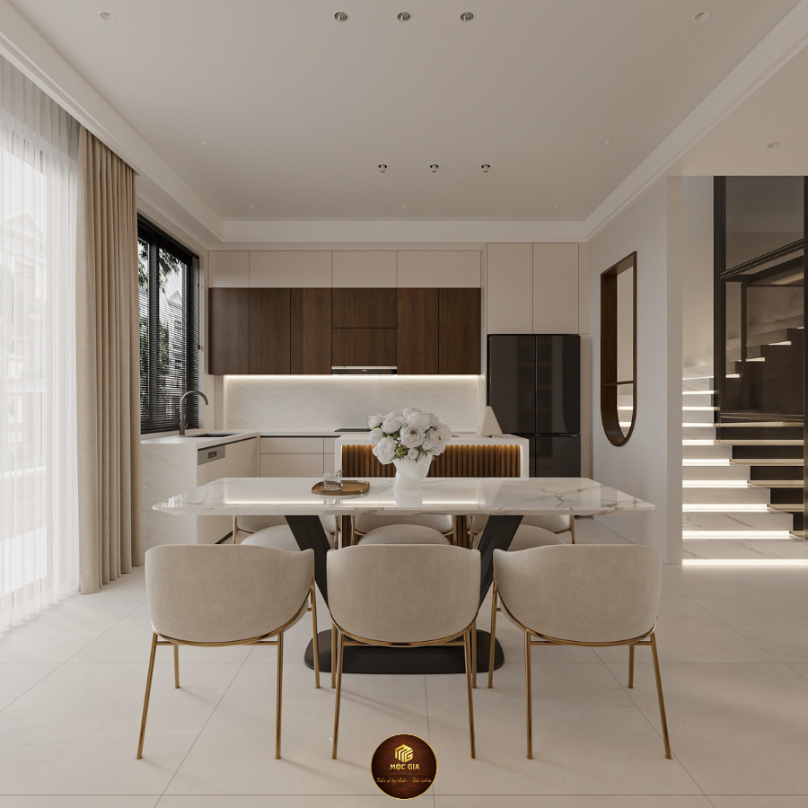Toàn bộ không gian được thiết kế đồng bộ phong cách, vật liệu và màu sắc, đảm bảo thẩm mỹ cao và công năng tối ưu.